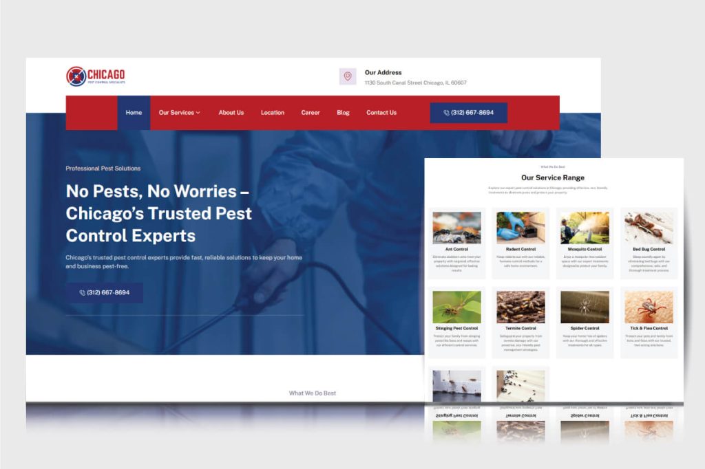 Developed a responsive website for Chicago Pest Control, highlighting local pest management services with clear navigation and customer-friendly design.